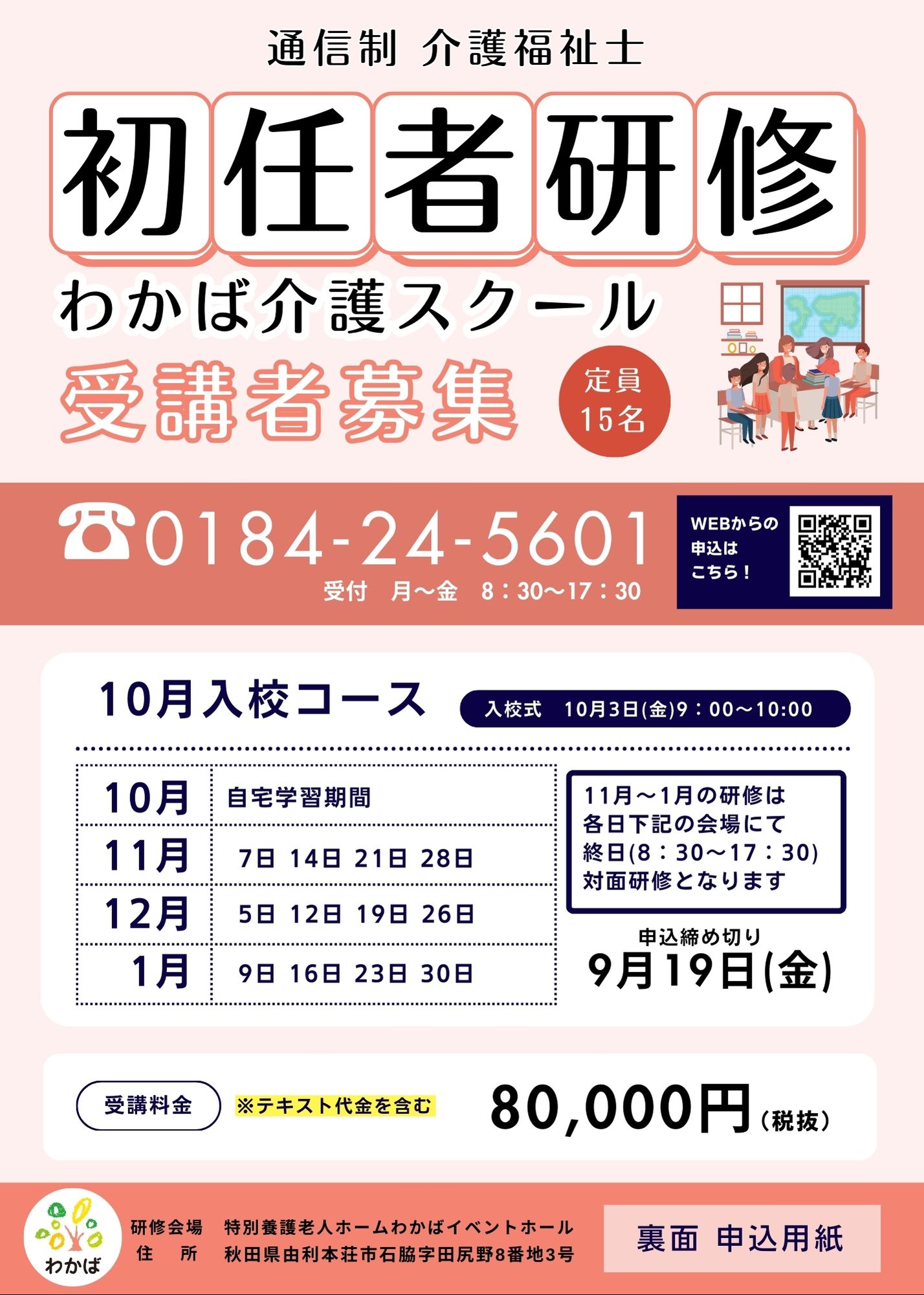 申込日 令和 年 月 日 必須 申込受講月 7月(実務者研修) 8月(実務者研修) 10月(初任者研修) 必須 研修種別 初任者研修 実務者研修 必須 氏名ふりがな 必須 氏名 必須 生年月日 昭和 平成 年 月 日 必須 性別 男 女 住所ふりがな 必須 住所 〒 - 必須 メールアドレス 必須 メールアドレス(確認) 電話番号 - - 必須 携帯番号 - - 勤務先 勤務先住所 勤務先電話番号 - - 必須 資格の有無 ヘルパー 2級 初任者研修 無資格 ※お申込時に資格証の提示または、コピーの提出をお願い致します。 受講料の納付方法 銀行振り込み 申込書受諾後に振込先をご連絡いたします 受付・お問い合わせ 〒015-0013 秋田県由利本荘市石脇字田尻野7 番地3 池田ライフサポート&システム㈱ わかば介護スクール TEL0184 -24-5601( 担当 藤巻)受付時間 平日8:30~17:30